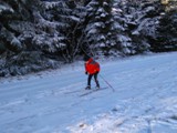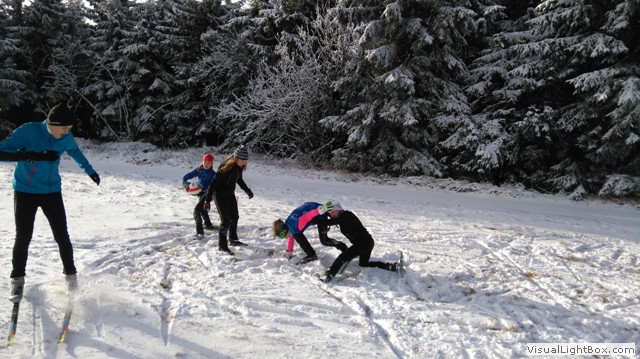 Samstag, auf der Wiese hinter der Sachsenbaude, es liegt Schnee!