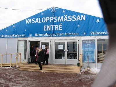 Sehr früh, gegen 4.00Uhr, verließen wir das Hüttendorf. Mit dem Bus ging es in das ca. 100km entfernte Berga zum Start des Vasalauf. Auf der Fahrt dahin hatten wir, wie wohl jedes Jahr üblich, Stau. So kamen wir erst gegen halb 7 am Startfeld an.